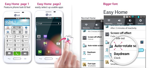 Zanimljivo je da telefon radi na KitKat verziji Android OS, što je retko videti u ovoj kategoriji telefona. Preko njega nalazi se LG interfejs, koji je dosta orijentisan ka korisniku, sa preglednim opcijama. Tu je dobro poznati Knock Code za otkjučavanje telefona, Guest Mode kada je potrebno ustupti telefon nekome, Easy Home koji vaš telefon pretvara u uređaj sa najjednostavnijim mogućim rasporedom opcija, što je od velike pomoći najmlađim i najstarijim korisnicima.